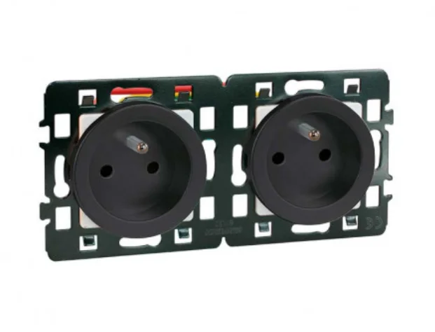 EUR'OHM - Prise Double 2P+T Pré-câblée - COMETE Couleur Vulcain